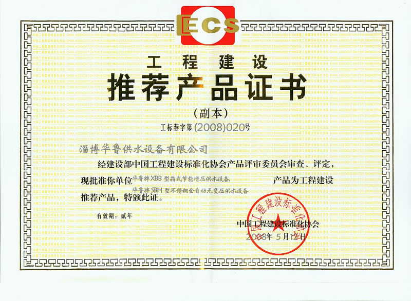 工程建设推荐证书