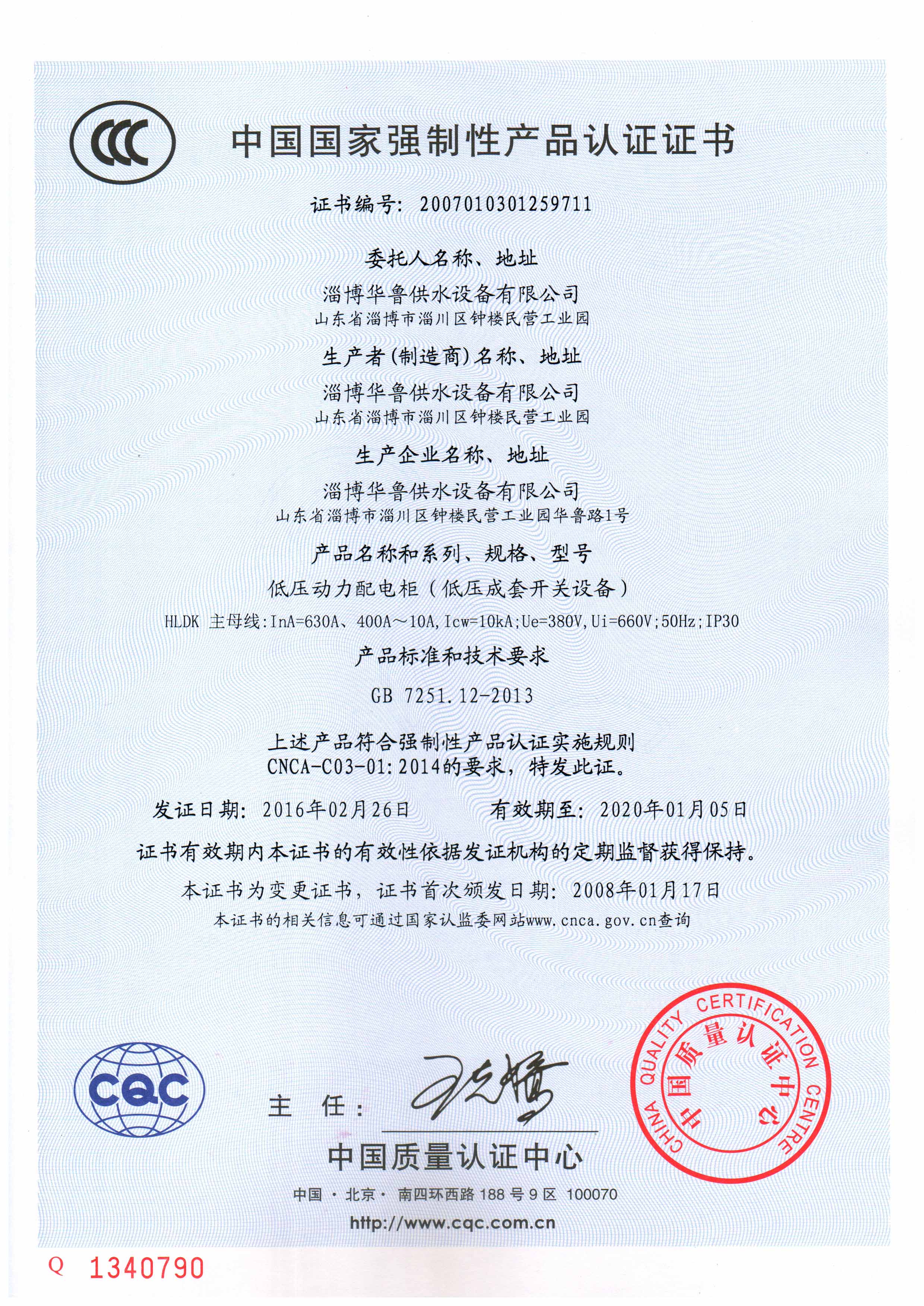 本公司低压动力开关柜通过国家CCC强制性认证。可生产固定式、抽出式开关柜。